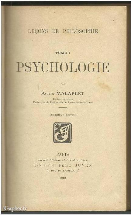 Livre : Leçons de philosophie : Tome 1 : psychologie - 1910