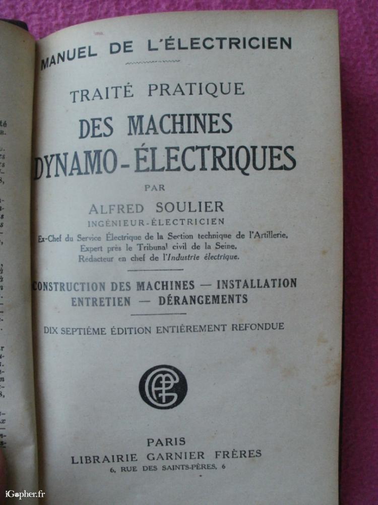 Livre : Manuel pratique des machines dynamo (Alfred Soulier)