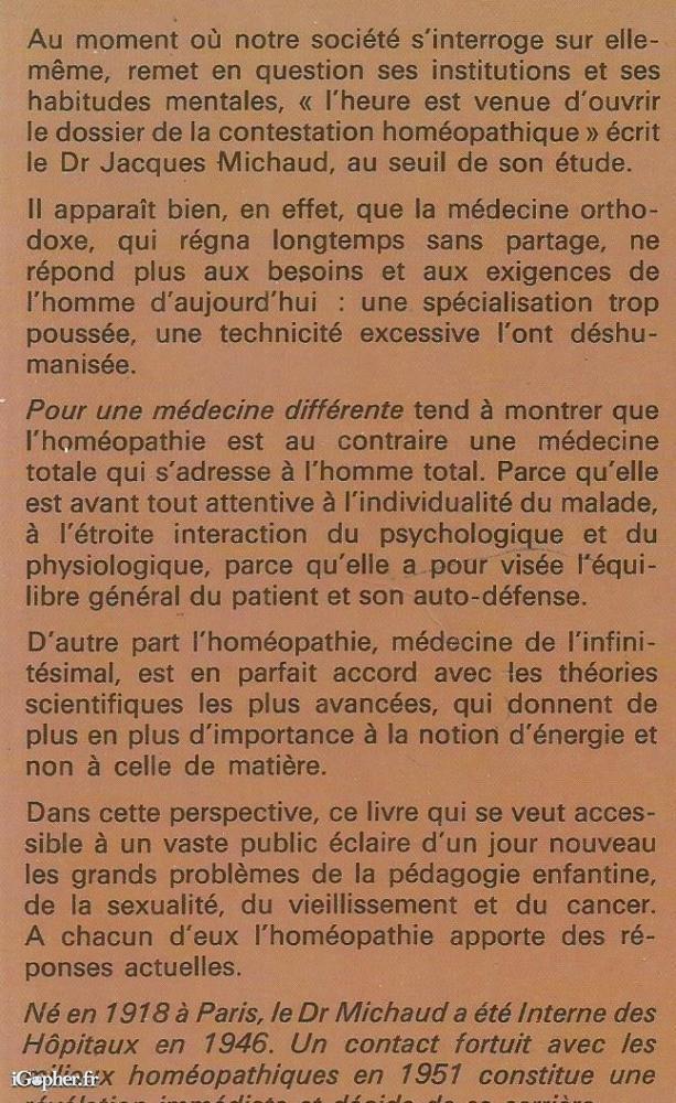 Livre : Pour une médecine différente (homéopathie) (Dr J Michaud)