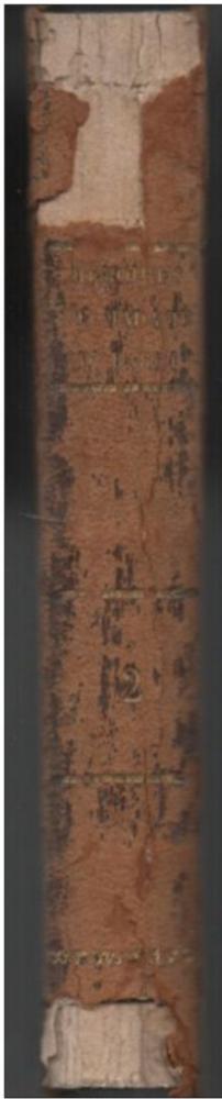 Etat : l'intérieur a des tâches de vieillesse, la couverture est rapéee et les coins sont pliés (sur le devant). Le dos, en cuir à l'origine, est très rapé, il y a des manques en haut et en bas.