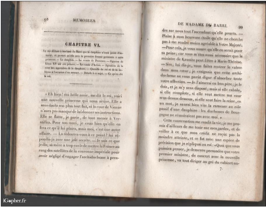 Le livre "Mémoires de Madame la Comtesse du Barri" est parut en 1829 aux éditions Mame et Delaunay-Vallée. Il s'agit du Tome 2.
