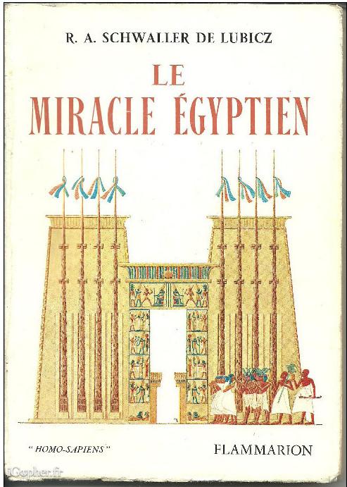 Le livre : "Le miracle égytien", écrit par R.A. SCHAWELLER de LUBICZ. Cet ouvrage a été publié en 1963 et fait partie de la collection "Homo Spens".