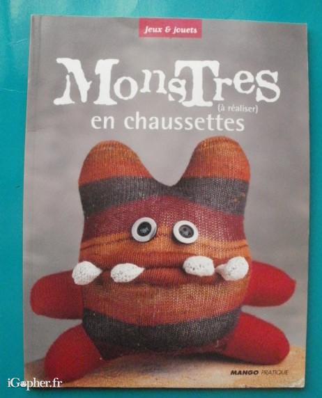 Un livre de la collection "Jeux et Jouets" qui titre : Monstres (à réaliser) en chaussettes. C'est un livre tutoriel pour créer des petits monstres sympathiques avec des chaussettes.