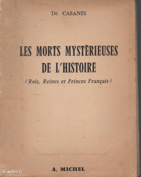 Rédigé par le Docteur CABANES, cet ouvrage est ancien et titre "Les morts mystérieuses de l'Histoire (Rois, Reines et Princes français)".