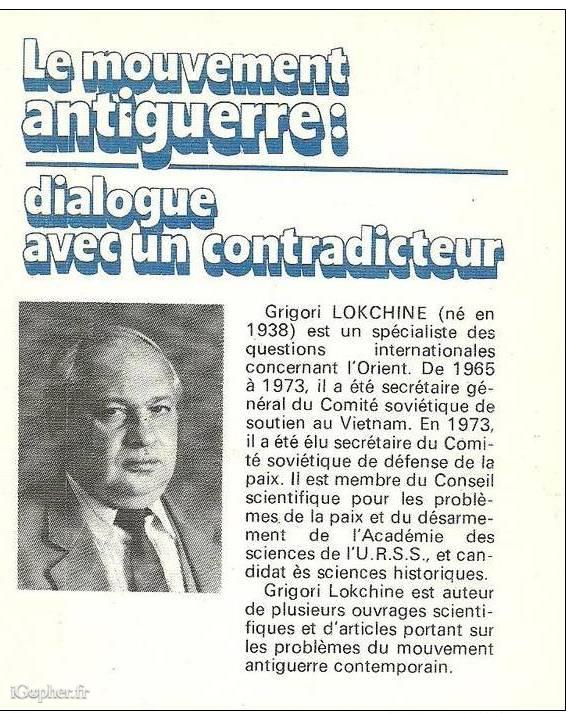 Un livre écrit par LOKCHINE GRIGORI : "Le mouvement antiguerre, dialogue avec un contradicteur".