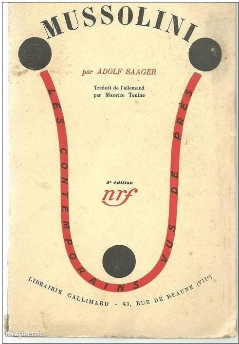C'est un livre traduit de l'allemand par Maurice Tenine, et initialement écrit par Adolf SAAGER. Il titre "Mussolini : Du rebelle au despote".