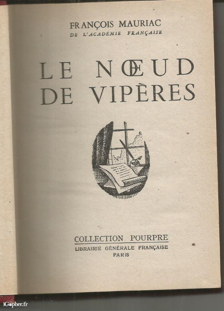 Un ouvrage de la Collection Pourpre, d'un total de 256 pages, ce livre a été écrit par François Mauriac et titre "Le noeud de vipères".