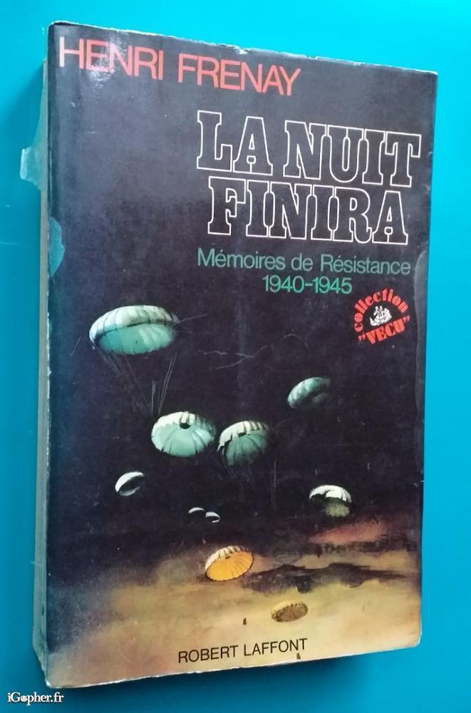 Ouvrage de la Collection "VECU", écrit par Henri FRENAY, il titre : La nuit finira - Mémoires de Résistance 1940-1945. Un livre d'un total de 608 pages paru aux éditions Robert Laffont en 1973.