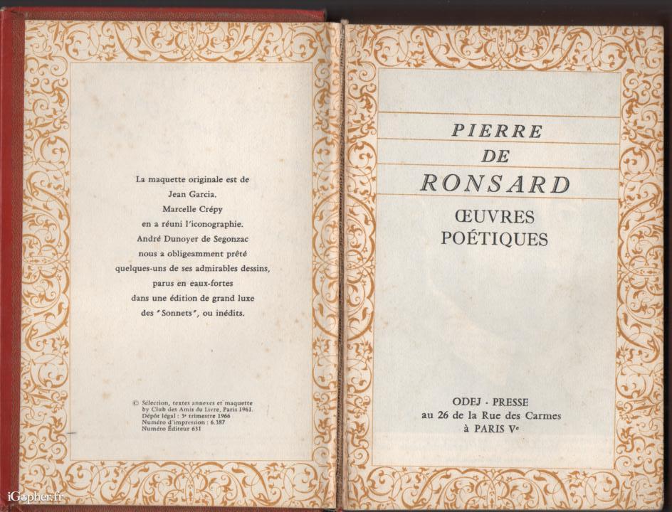 Livre : Oeuvres poétiques (Pierre de Ronsard)