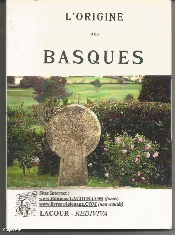 Livre de 147 pages, écrit par J. ESPAGNOLLE, il titre "L'origine des basques". Réimpression de l'édition de 1900. Collection Rediviva.