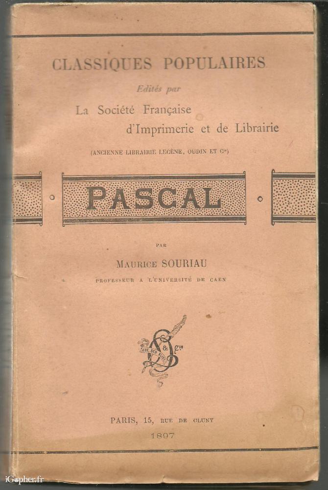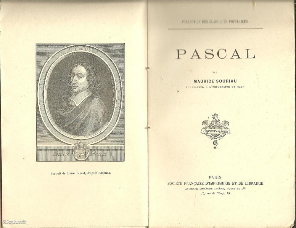Ce livre titre "PASCAL" et a été écrit par Maurice SOURIAU, Professeur de l'Université de Caen.