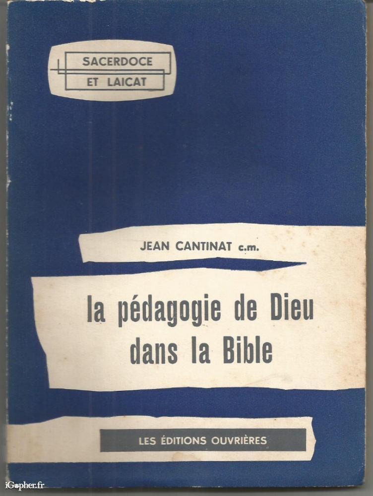 Livre écrit par Jean CANTINAT, il titre "La pédagogie de Dieu dans la Bible". Collection "Sacerdoce et laicat". Livre de 109 pages paru aux éditions les Editions Ouvrières de 1960.