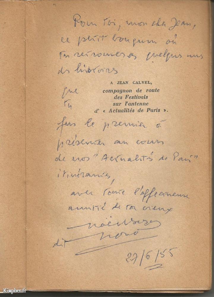 Le livre est dédicacé par l'auteur en 1955 à Jean CALVEL compagnon de route. Il comprend 182 pages + table des matières.