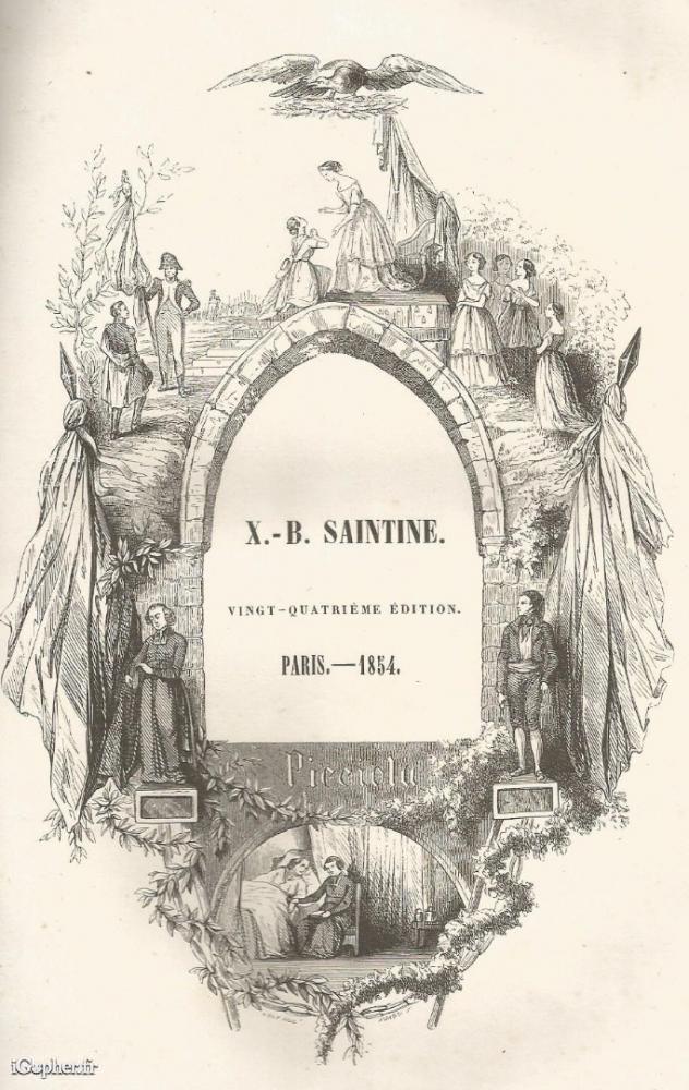 Une édition de 1854, la 24ème édition de PICCIOLA, écrit par X.-B. SAINTINE. Livre de 358 pages, 3 tranches dorées, illustré par des gravures.