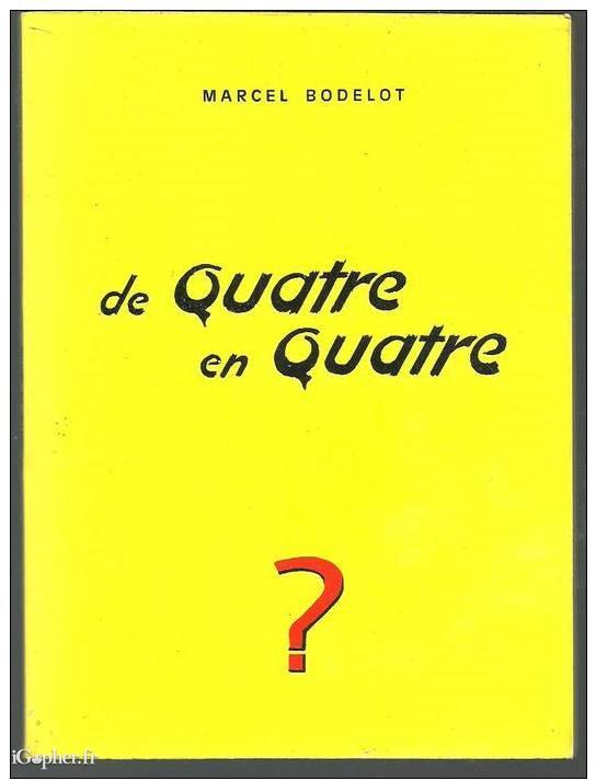 Un livre de Marcel BODELOT qui est peintre et poète. Son livre de 64 pages ne comporte que des poésies, sous forme de quatrain. L'ouvrage titre "De quatre en quatre ?".