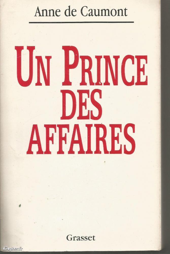 Livre de 321 pages (+ table des matières) écrit par Anne de CAUMONT, il titre "Un prince des affaires" et est paru aux éditions GRASSET en 1996.