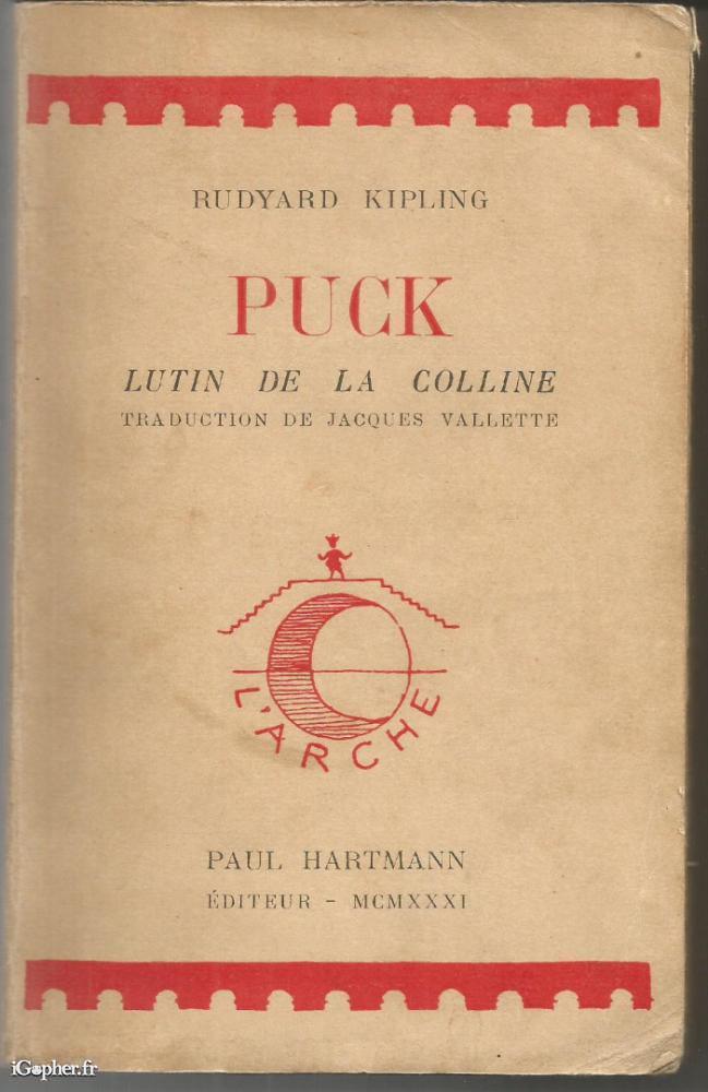 Un livre de la Collection "l'Arche", écrit par Rudyard KIPLING. Il titre : Puck Lutin de la colline. Traduction de Jacques Vallette. Introduction d'André Maurois.