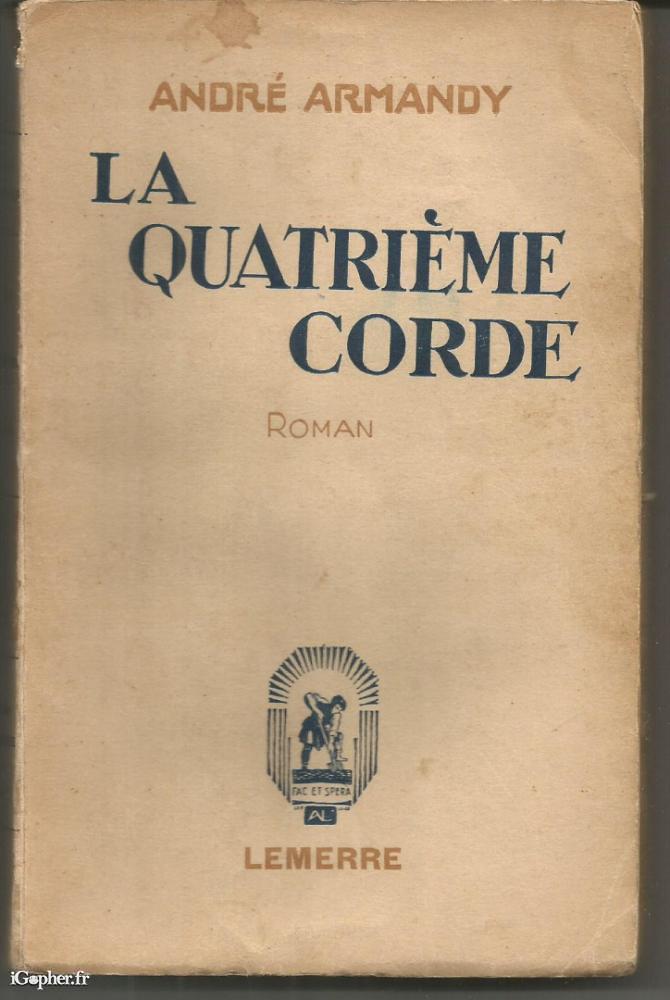 Livre broché de 258 pages + table des matières, écrit par André ARMANDY, il titre "La quatrième corde". Un ouvrage publié à la Librairie Alphone Lemerre en 1935.