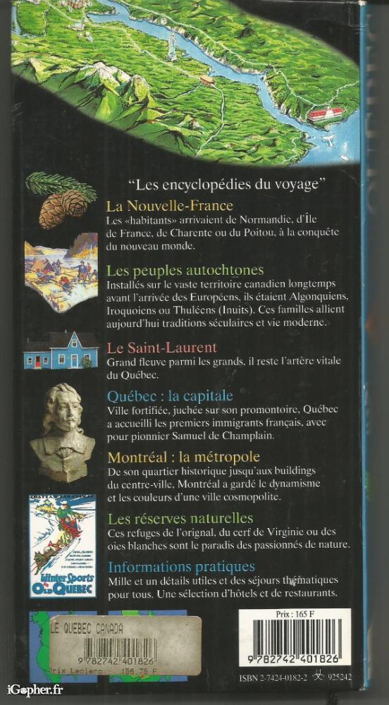 Ouvrage d'un total de 408 pages. Guide touristique des éditions Gallimard, Québec - Canada. Edition de 1996. Un livre contenant d'innombrables photos.