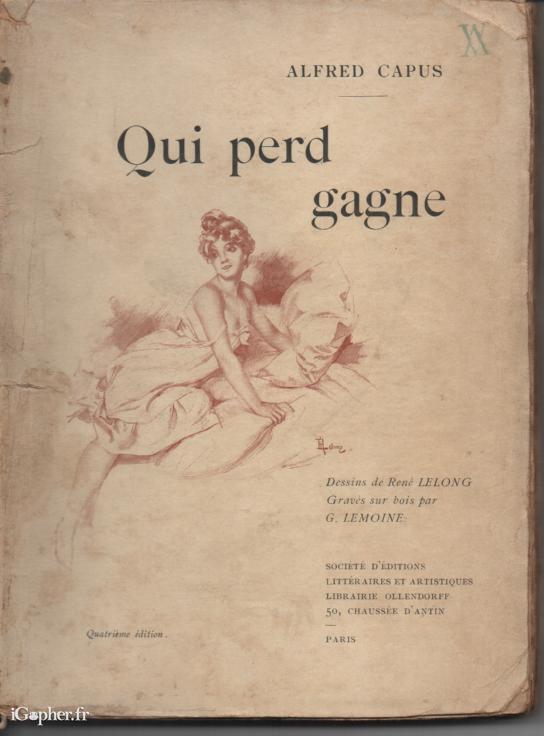 L'ouvrage a été écrit par Alfred CAPUS, il titre "Qui perd gagne". C'est la 4ème édition, publié en 1900.