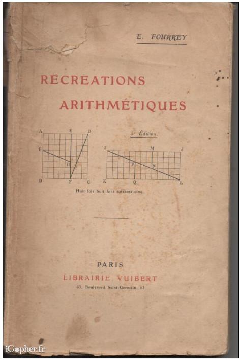 Un livre de E. FOURREY, il titre : Récréations arithmétiques. Une 5ème édition publiée à la Librairie VUIBERT. Aucune date d'édition précisée.