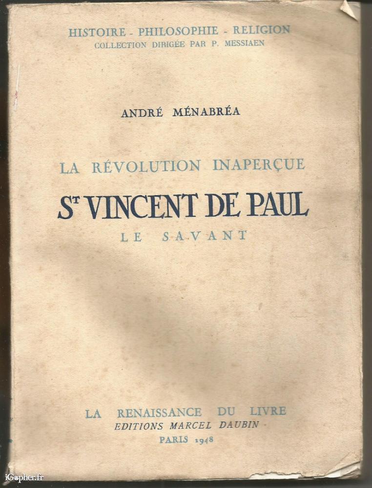 Ouvrage de l'auteur : André MENABREA (1872 - 1960). Il titre : La révolution inaperçue ST VINCENT DE PAUL le savant.