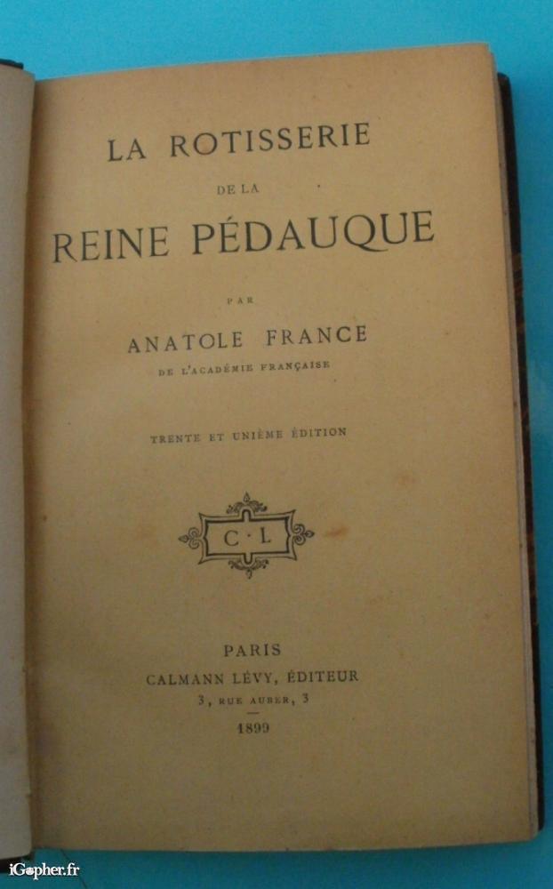 Une 31ème édition du livre écrit par Anatole FRANCE, il titre : La rôtisserie de la Reine Pédauque.