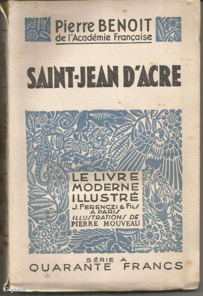 Ouvrage de la collection "le livre moderne illustré", écrit par Pierre BENOIT. Il titre "Saint Jean d'Acre" et comprend des illustrations de Pierre Mouveau.