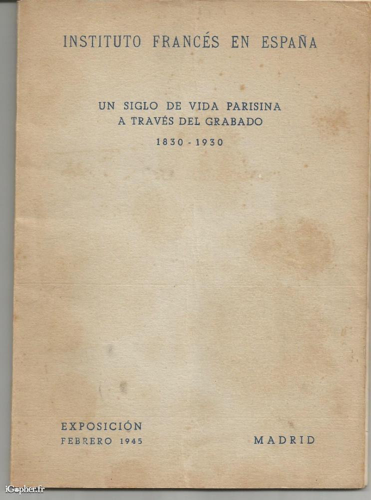 Livre en espagnol de l'INSTITUTO FRANCES en Espagne, il titre "Un siglo de vida parisina a traves del Grabado 1830-1930".
