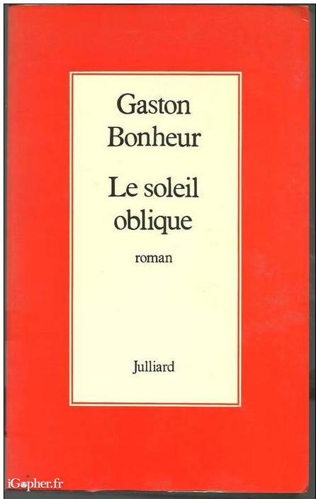 Livre de 408 pages écrit par Gaston BONHEUR, il titre "Le soleil oblique". Un ouvrage paru aux éditions JULLIARD en 1978.