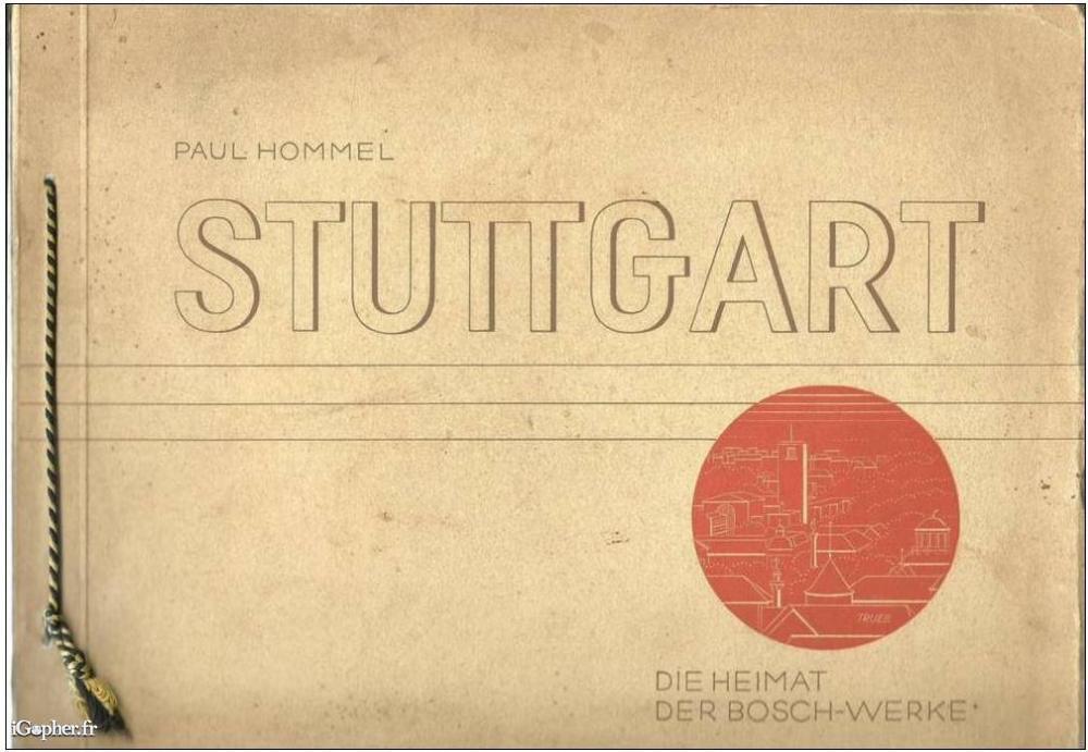 Album sous forme de livre : STUTTGART, Die Heimat der Bosch-Werke, par Paul HOMMEL. Il s'agit de reproductions de photos. L'ouvrage doit dater des années 30 environ.