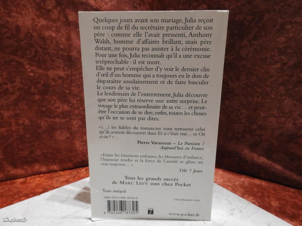 Résumé : quelques jours avant son mariage, Julia reçoit un coup de fil du secrétaire particulier de son père : comme elle l'avait pressenti, Anthony Walsh, homme d'affaires brillant, mais père distant, ne pourra pas assister à la cérémonie. Mais, pour une fois, Julia doit reconnaître qu'il a une excuse irréprochable : il est mort. Julia ne peut s'empêcher d'y voir le dernier clin d'œil d'un homme qui a toujours eu le don de disparaître soudainement et de faire basculer le cours de sa vie. Le lendemain de l'enterrement, Julia découvre que son père lui réserve une autre surprise. Le voyage le plus extraordinaire de sa vie... et peut-être l'occasion de se dire, enfin, toutes les choses qu'ils ne se sont pas dites.