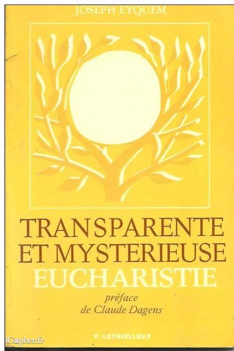 Ouvrage écrit par Joseph EYQUEM. Il titre "Transparente et mystérieuse Eucharistie". Préface de Claude Dagens. Livre de 144 pages édité en 1983 chez l'éditeur P. LETHIELLEUX.