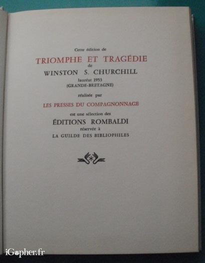 Un livre de Winston S. Churchill qui titre Triomphe et tragédie (Tome 1). Ouvrage de la Collection "Prix nobel de littérature" éditée sous le patronage de l'académie suédoise et de la fondation Nobel".