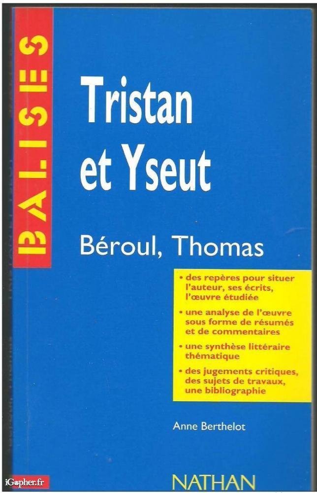 Un livre de Béroul, Thomas, qui fait partie de la collection BALISES et porle le N°25. Collection dirigée par Henri Mitterrand. Cet ouvrage titre "Tristan et Yseut" et comprend 142 pages.