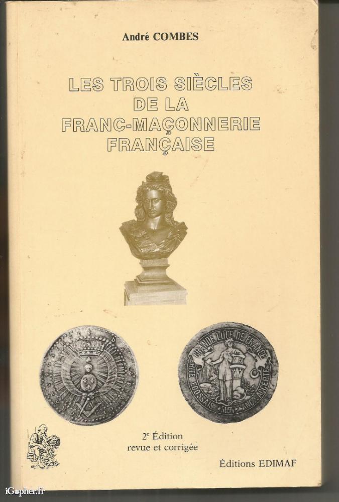 Ouvrage de l'auteur André COMBES, il titre : Les trois siècles de la franc-maçonnerie française. Un livre de 223 pages, 2ème édition revue et corrigée, publié aux éditions Edimaf en 1989.