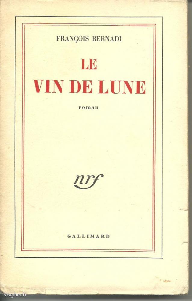 Livre broché de 275 pages écrit par François BERNADI, il titre : Le vin de lune. Un ouvrage paru aux éditions Gallimard en 1957. C'est la 3ème édition.