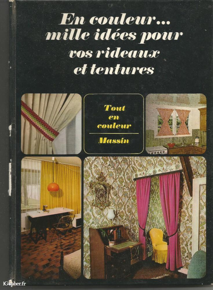 Livret de 55 pages, il titre "En couleur... 1000 idée pour vos rideaux et vos tentures". Un livre de J. DELARUE avec des illustrations sur toutes les pages. Un livret paru aux éditions MASSIN (sans date).