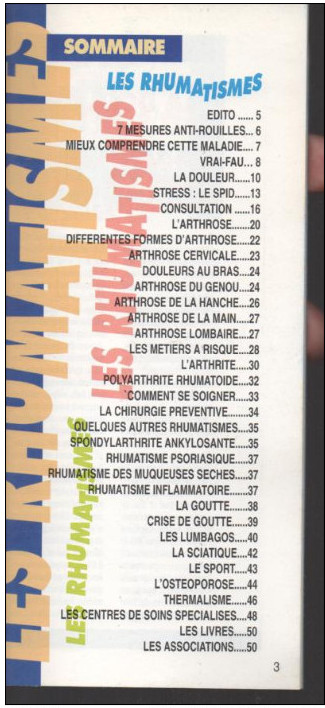 - Quelques autres rhumatismes (lombaires, hanche, genou et main).