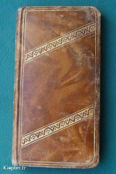 Etat : à l'origine, les tranches étaients dorées mais la dorure est ancienne et ternie. La couverture en cuir est élimée sur les côtés.