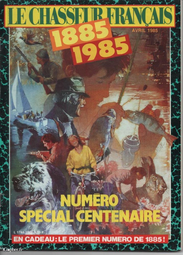 Ancien numéro du magazine "Le Chasseur Français", il date d'avril 1985. C'est un numéro spécial centenaire 1885 - 1985.