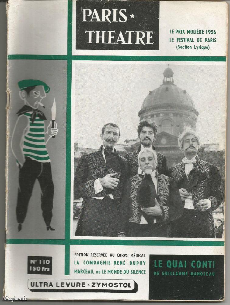 Une édition réservée au corps médical, un ancien numéro (N°110) du magazine "Paris Théâtre", publiée au mois de juillet 1956 (10ème année).