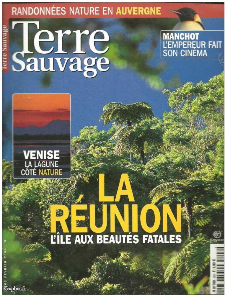 Ancien numéro du magazone TERRE SAUVAGE, N°202 de Février 2005 : Venise, Manchots Empereur, la Réunion Auvergne.