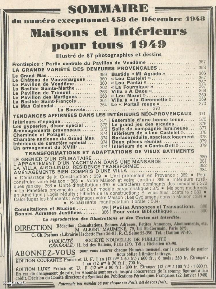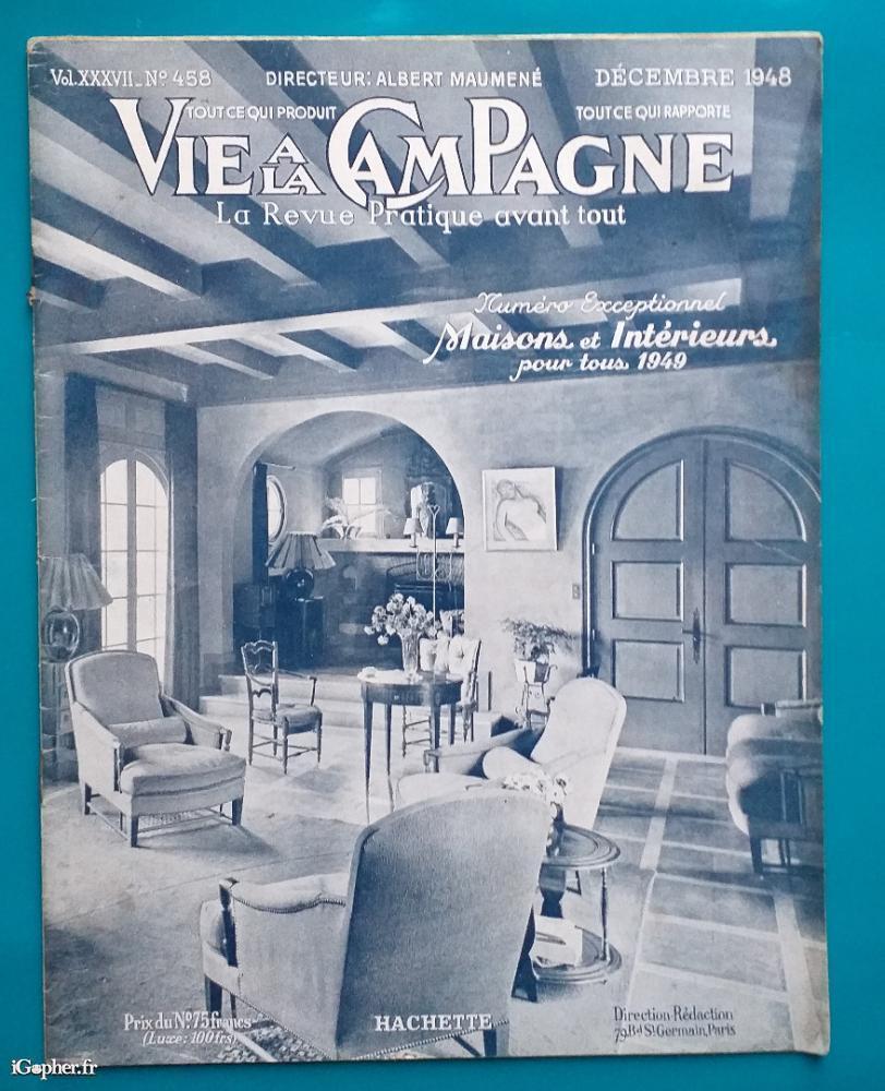 Ancien numéro du magazine "VIE à la CAMPAGNE", N°458 de Décembre 1948. Numéro exceptionnel, maisons et intérieurs pour tous.