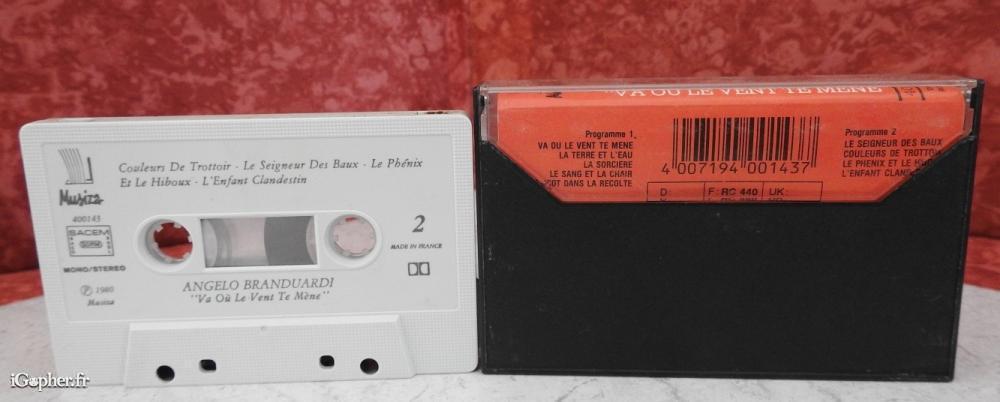 Cassette audio : Angélo Branduardi. Va ou le vent te mène - 9 Titres - année 1980.