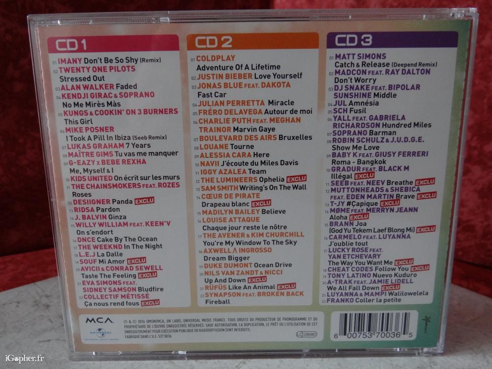 Un CD audio d'occasion mais en très bon état, il est comme neuf. Faites-vous plaisir avec la sélection du meilleur des hits 2016. Il comprend 3 CD pour un total de 66 titres.