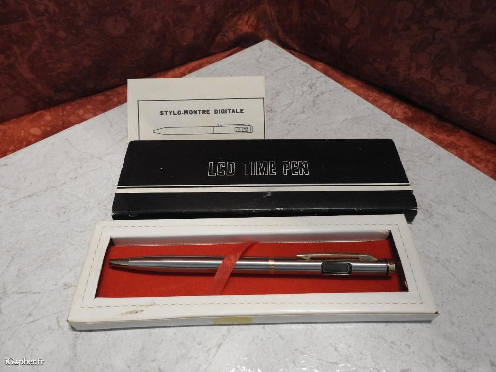 Il est en bon état. Stylo montre avec écran LCD. De style ancien. Il faut changer les piles. Il est en métal avec sa boîte d'origine et notice en Français.