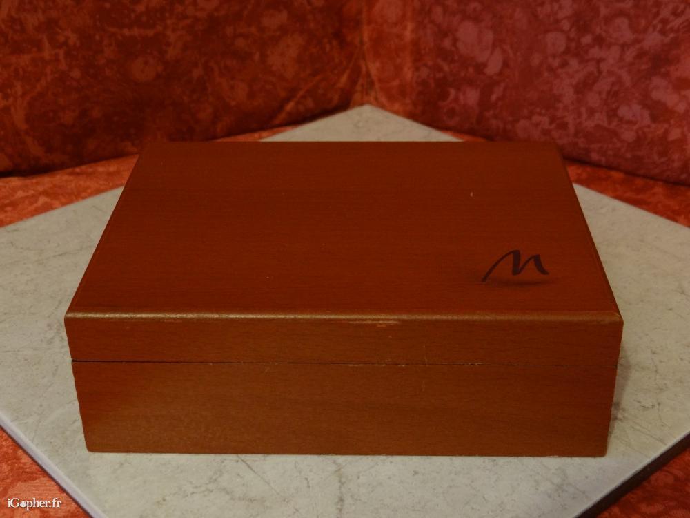Le coffret est en bois vernis et mesure 18 x 14 x 5,5 cm.