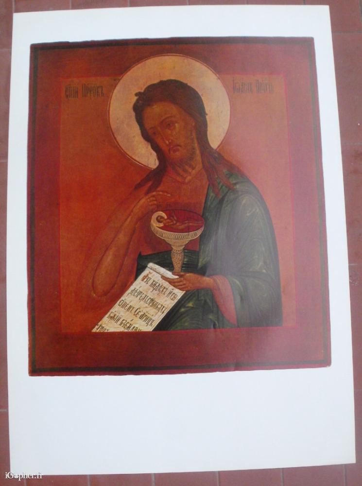 Une affiche représentant une icône russe : Jean-Baptiste. C'est une impression sur papier glacé.