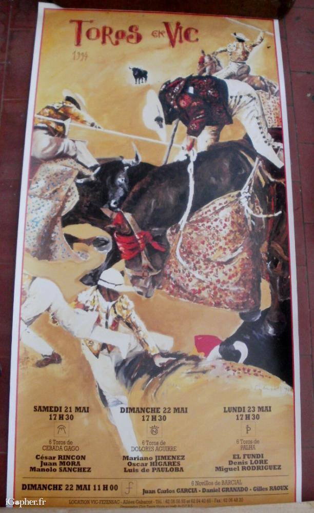 Une affiche de tauromachie, très colorée et assez épaisse.